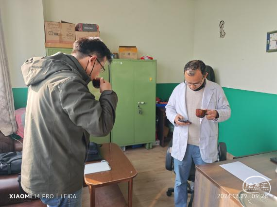捐贈(zèng)設(shè)備儀式 細(xì)心的拉杰夫教授特意選好背景給我們留下這張寶貴的照片