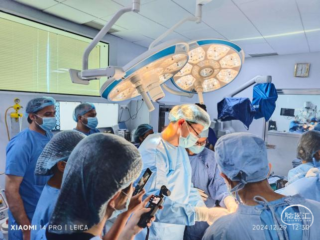 9點(diǎn)半左右來(lái)到手術(shù)室,換好手術(shù)衣進(jìn)入手術(shù)室發(fā)現(xiàn)手術(shù)室雖然裝修并不豪華,但很寬敞,神經(jīng)外科有兩個(gè)中間玻璃門隔斷的手術(shù)間,都配有較新款的手術(shù)顯微鏡和內(nèi)鏡。門口還放著一臺(tái)日本贈(zèng)送的神經(jīng)導(dǎo)航系統(tǒng),Rajstha教授告訴我,這個(gè)贈(zèng)送的設(shè)備最大的麻煩是壞了沒(méi)法找售后維修。